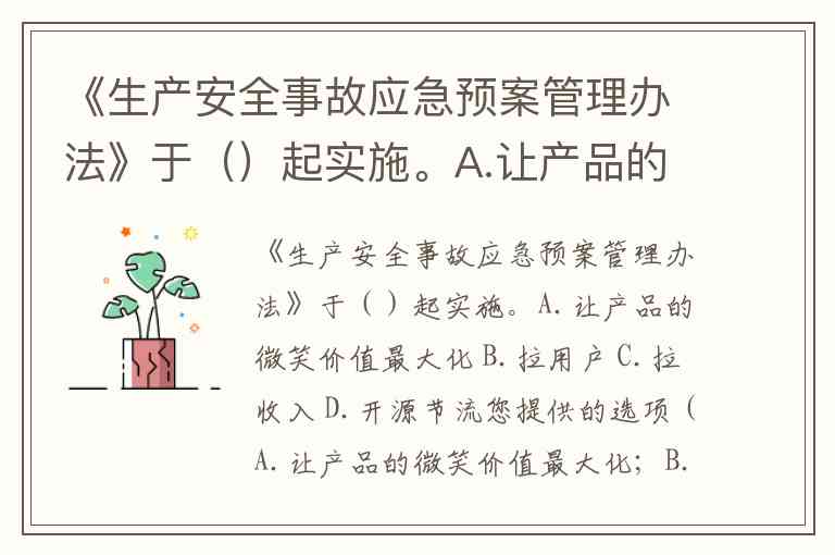 《生产安全事故应急预案管理办法》于()起实施。A.让产品的微笑价值最大化 B.拉用户 C.拉收入 D.开源节流