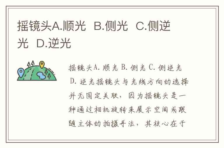 摇镜头A.顺光 B.侧光 C.侧逆光 D.逆光