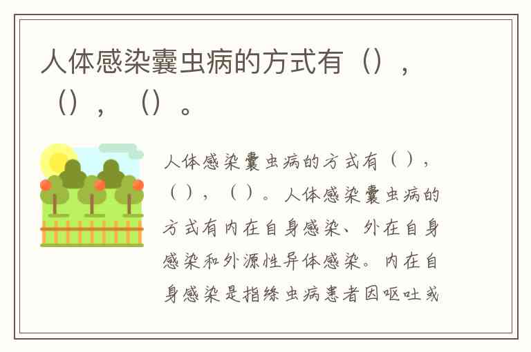 人体感染囊虫病的方式有内在自身感染、外在自身感染和外源性异体感染。