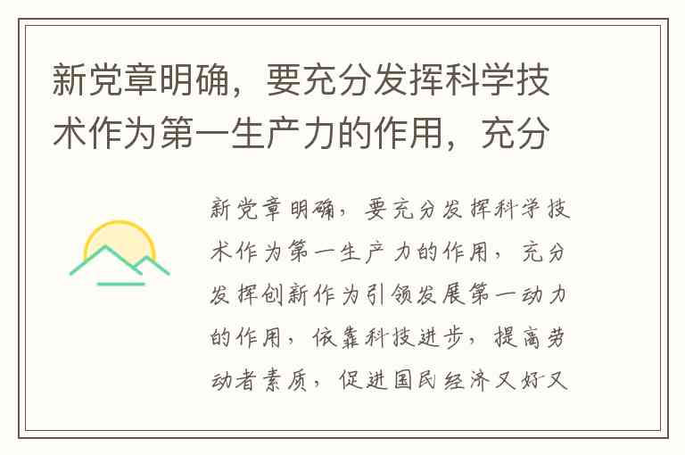 新党章明确,要充分发挥科学技术作为第一生产力的作用,充分发挥创新作为引领发展第一动力的作用,依靠科技进步,提高劳动者素质,促进国民经济又好又快发展。()