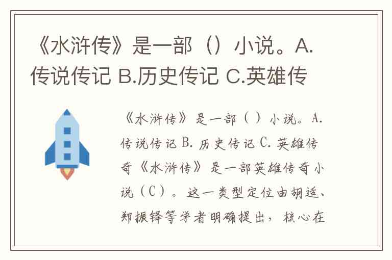 《水浒传》是一部()小说。A.传说传记 B.历史传记 C.英雄传奇