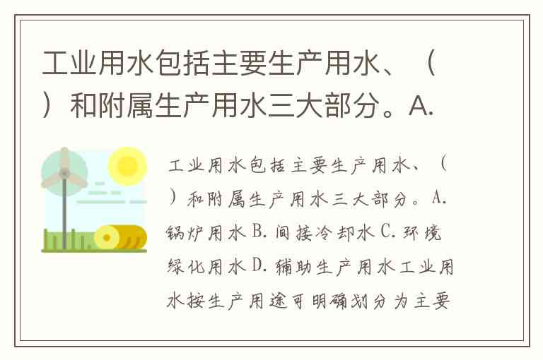工业用水包括主要生产用水、()和附属生产用水三大部分。A.锅炉用水 B.间接冷却水 C.环境绿化用水 D.辅助生产用水