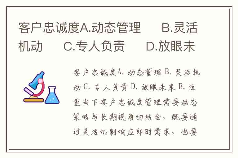 客户忠诚度A.动态管理 B.灵活机动 C.专人负责 D.放眼未来 E.注重当下