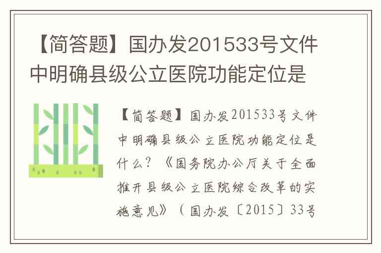 【简答题】国办发201533号文件中明确县级公立医院功能定位是什么?