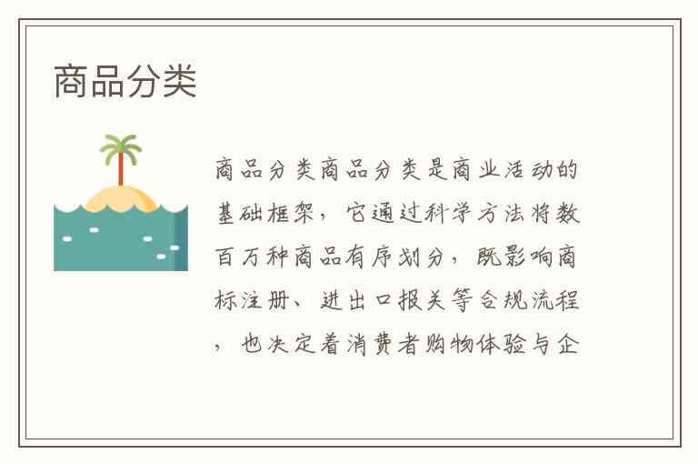 商品分类如同商业世界的“经纬线”,既需要遵循尼斯分类等国际规则,也需灵活应对行业特殊需求。无论是企业申报商标时的精准类目选择,还是消费者网购时的高效筛选,背