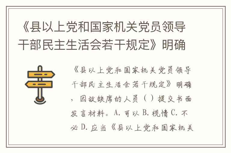 《县以上党和国家机关党员领导干部民主生活会若干规定》明确,因故缺席的人员()提交书面发言材料。A.可以 B.视情 C.不必 D.应当