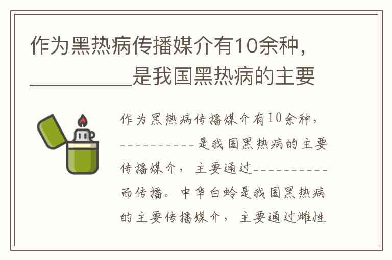 作为黑热病传播媒介有10余种,__________是我国黑热病的主要传播媒介,主要通过__________而传播。