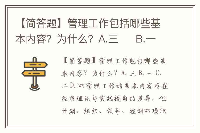 【简答题】管理工作包括哪些基本内容?为什么?A.三 B.一 C.二 D.四