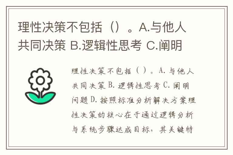 理性决策不包括()。A.与他人共同决策 B.逻辑性思考 C.阐明问题 D.按照标准分析解决方案