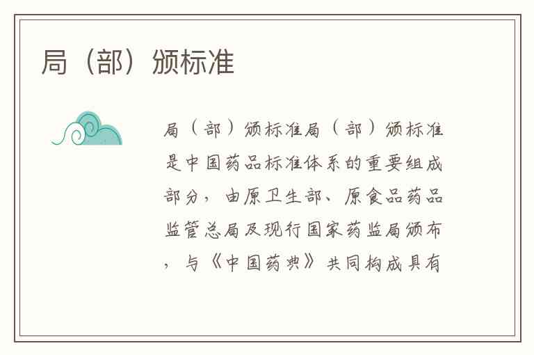 局(部)颁标准是中国药品标准体系的重要组成部分,由原卫生部、原食品药品监管总局及现行国家药监局颁布,与《中国药典》共同构成具有法律约束力的国家药品标准。这类标准主要收载疗效确切但尚未纳入药典的药品,填补了国家标准在特定药品领域的空白。