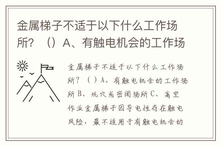 金属梯子因导电性存在触电风险,最不适用于有触电机会的工作场所。电力安全规范明确指出,涉电作业必须使用绝缘材质梯子,禁止使用金属梯,因为金属梯接触带电体或靠近高压电时可能引发触电事故,这属于重大安全风险。