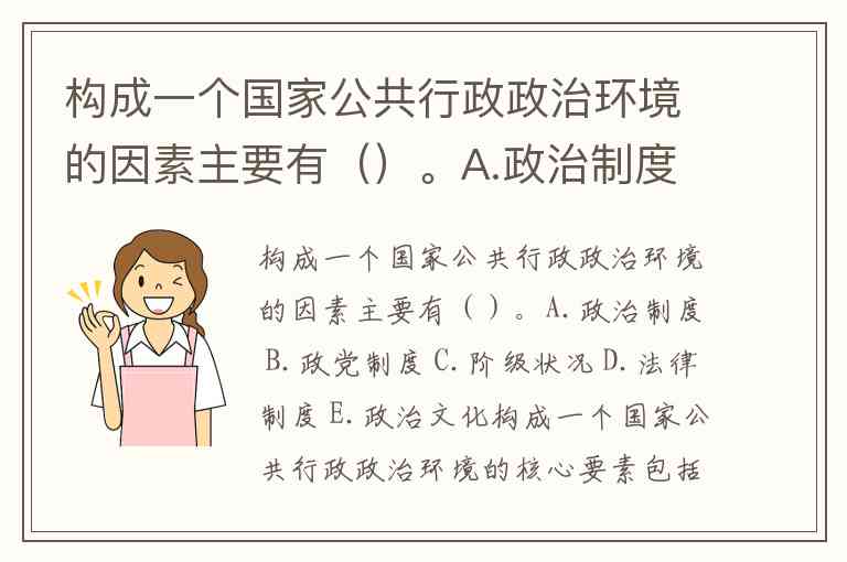 构成一个国家公共行政政治环境的因素主要有()。A.政治制度 B.政党制度 C.阶级状况 D.法律制度 E.政治文化