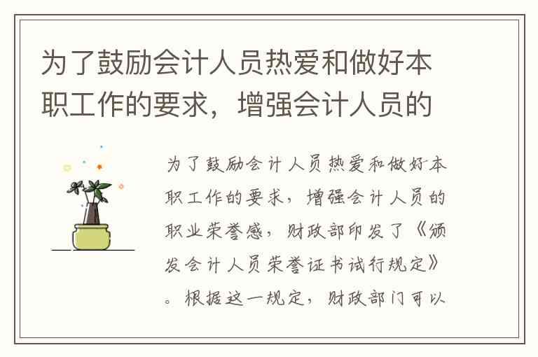 财政部门为从事会计工作满30年的会计人员颁发《会计人员荣誉证书》。这一标准在《颁发会计人员荣誉证书试行规定》中明确规定,适用于全民所有制企业、事业单位、国家机关、军队、社会团体等单位的现职会计人员,且"满30年"是指截至发证年度12月31日累计专业工作年限达到30周年。
