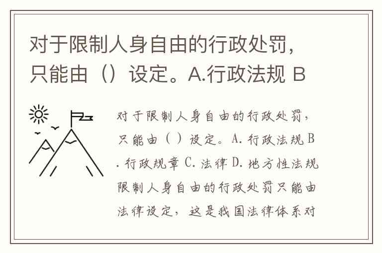 对于限制人身自由的行政处罚,只能由()设定。A.行政法规 B.行政规章 C.法律 D.地方性法规