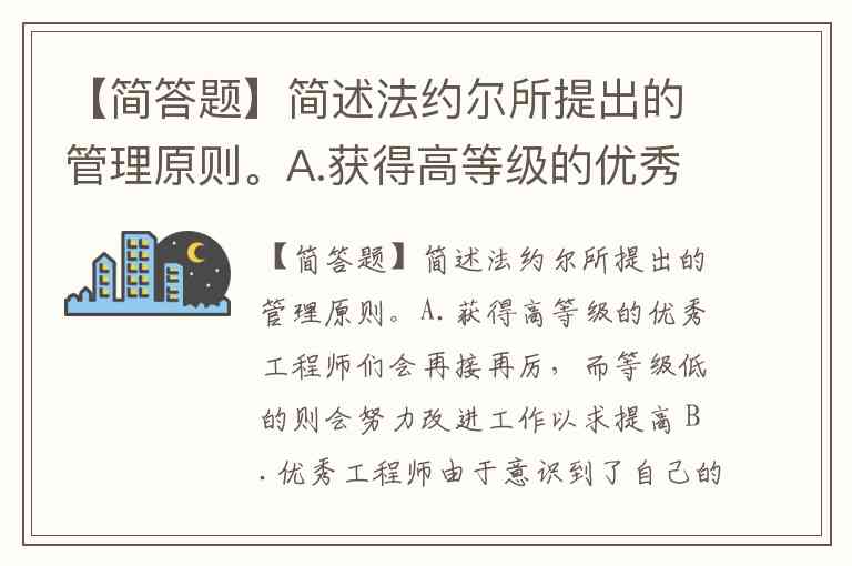 【简答题】简述法约尔所提出的管理原则。A.获得高等级的优秀工程师们会再接再厉,而等级低的则会努力改进工作以求提高 B.优秀工程师由于意识到了自己的价值而产生跳槽思想,差一些的则仍会留在企业 C.对这种严格控制,工程师们很有意见,致使今后工作难以分配 D.差一些的工程师,由于面子过不去而另谋职业出走,结果只留下优秀的工程师