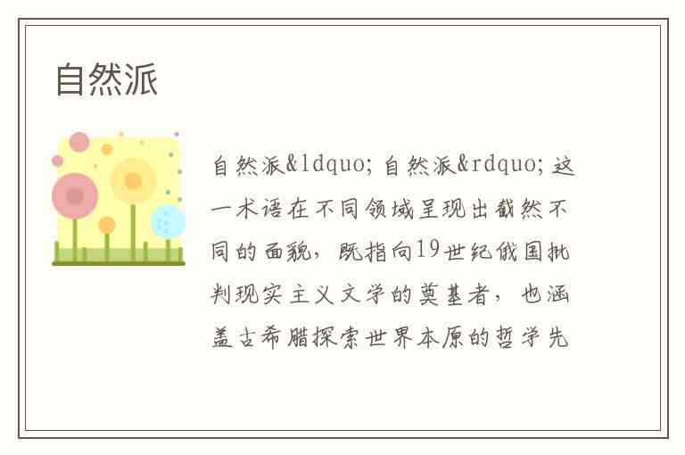 “自然派”这一术语在不同领域呈现出截然不同的面貌,既指向19世纪俄国批判现实主义文学的奠基者,也涵盖古希腊探索世界本原的哲学先驱,甚至包括当代中国的艺术实践。其中,19世纪俄国自然派文学最具影响力,它以果戈理为旗帜,通过“日常生活剪影”式的真实描写,成为俄罗斯批判现实主义的起点。