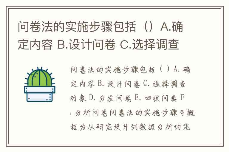 问卷法的实施步骤包括()A.确定内容 B.设计问卷 C.选择调查对象 D.分发问卷 E.回收问卷 F.分析问卷