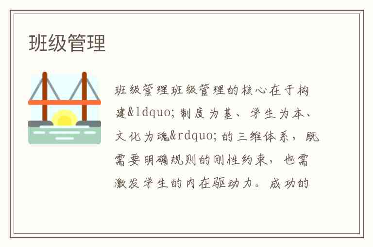 班级管理的核心在于构建“制度为基、学生为本、文化为魂”的三维体系,既需要明确规则的刚性约束,也需激发学生的内在驱动力。成功的班级管理不是班主任的“独角戏”,而是通过科学放权、民主参与和情感连接,让每个学生都成为班级建设的参与者和受益者。