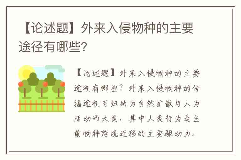 【论述题】外来入侵物种的主要途径有哪些?
