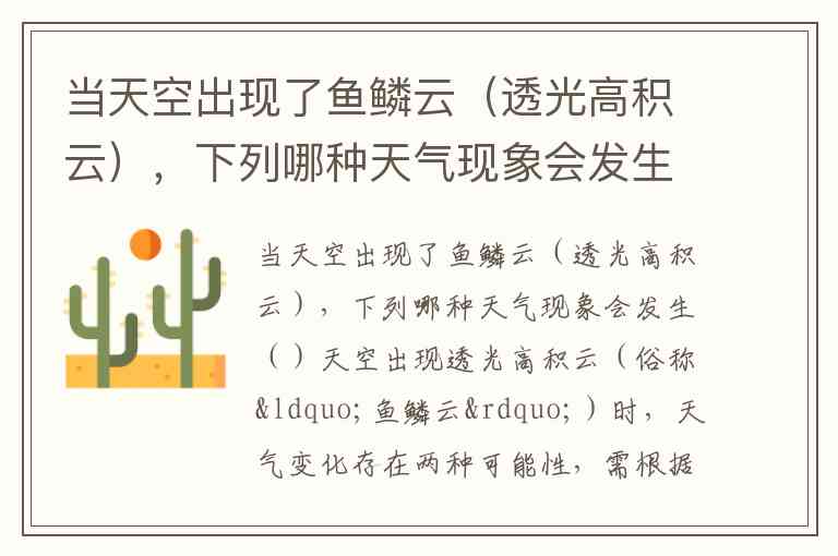 当天空出现了鱼鳞云(透光高积云),下列哪种天气现象会发生()