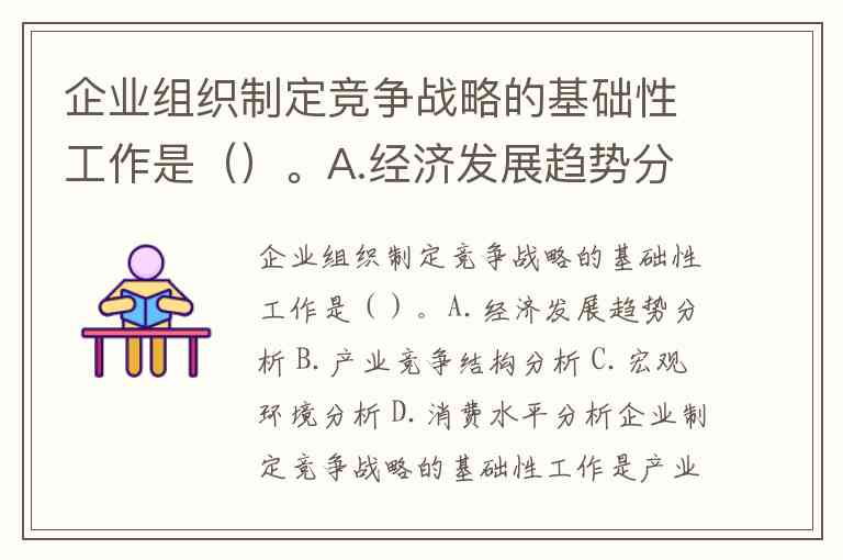企业组织制定竞争战略的基础性工作是()。A.经济发展趋势分析 B.产业竞争结构分析 C.宏观环境分析 D.消费水平分析