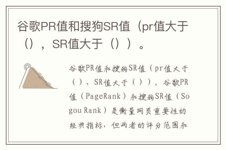 谷歌PR值和搜狗SR值(pr值大于(),SR值大于())。
