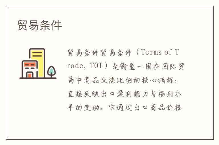 贸易条件(Terms of Trade, TOT)是衡量一国在国际贸易中商品交换比例的核心指标,直接反映出口盈利能力与福利水平的变动。它通过出口商品价格指数与进口商品价格指数的比率计算,揭示单位出口商品所能换回的进口商品数量变化。例如,当贸易条件指数从100升至120时,意味着出口同等价值商品能多换回20%的进口商品,反之则表示贸易利益受损。这一指标不仅是宏观经济决策的重要依据,也深刻影响企业投资策略与消费者行为模式。