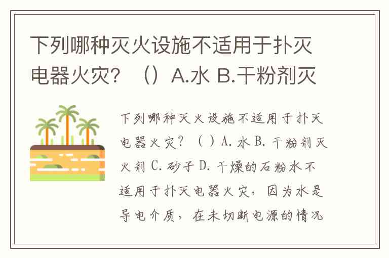 下列哪种灭火设施不适用于扑灭电器火灾?()A.水 B.干粉剂灭火剂 C.砂子 D.干燥的石粉