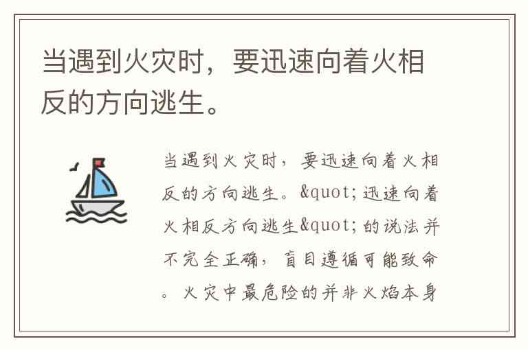当遇到火灾时,要迅速向着火相反的方向逃生。