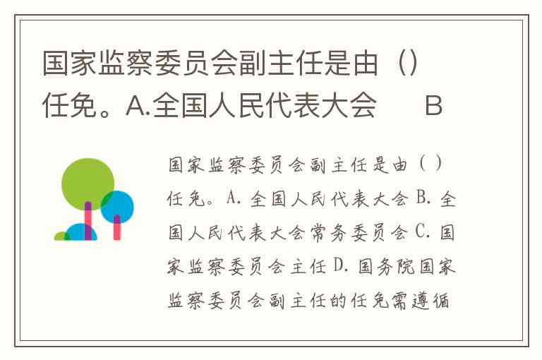 国家监察委员会副主任是由()任免。A.全国人民代表大会 B.全国人民代表大会常务委员会 C.国家监察委员会主任 D.国务院