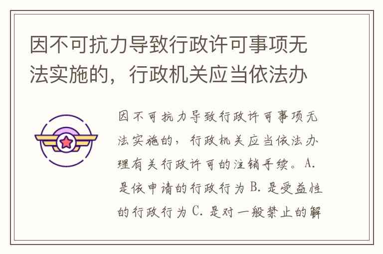 因不可抗力导致行政许可事项无法实施的,行政机关应当依法办理有关行政许可的注销手续。A.是依申请的行政行为 B.是受益性的行政行为 C.是对一般禁止的解除 D.是负担性的行政行为