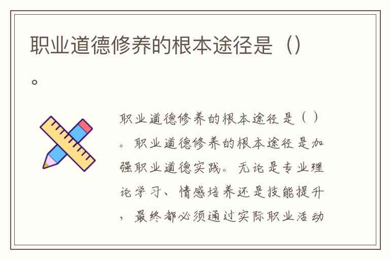 职业道德修养的根本途径是()。
