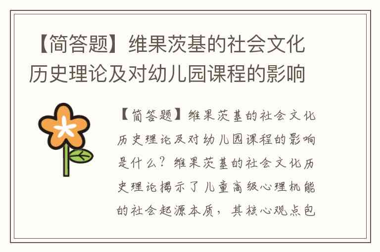 【简答题】维果茨基的社会文化历史理论及对幼儿园课程的影响是什么?