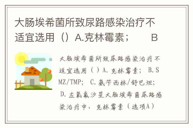 大肠埃希菌所致尿路感染治疗不适宜选用()A.克林霉素; B.SMZ/TMP; C.氨苄西林/舒巴坦; D.左氧氟沙星