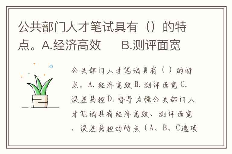 公共部门人才笔试具有()的特点。A.经济高效 B.测评面宽 C.误差易控 D.督导力强