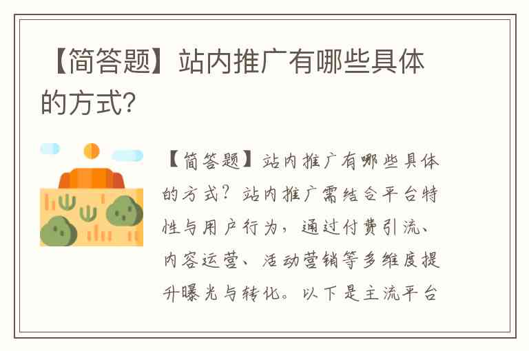 站内推广需结合平台特性与用户行为,通过付费引流、内容运营、活动营销等多维度提升曝光与转化。以下是主流平台的具体方式及操作要点: