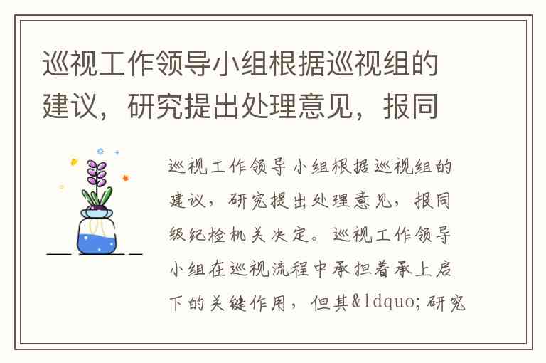 巡视工作领导小组根据巡视组的建议,研究提出处理意见,报同级纪检机关决定。