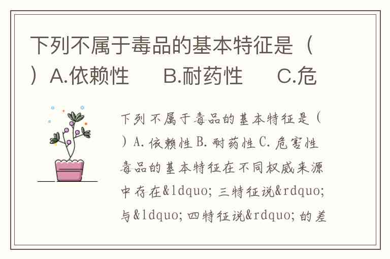 下列不属于毒品的基本特征是()A.依赖性 B.耐药性 C.危害性