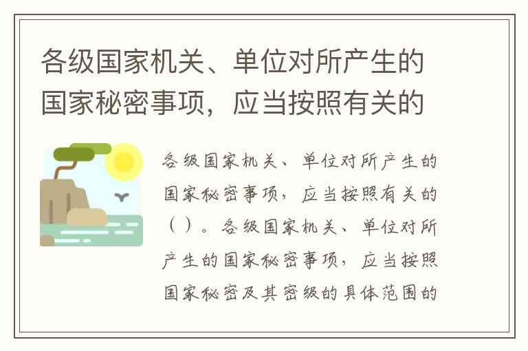 各级国家机关、单位对所产生的国家秘密事项,应当按照有关的()。