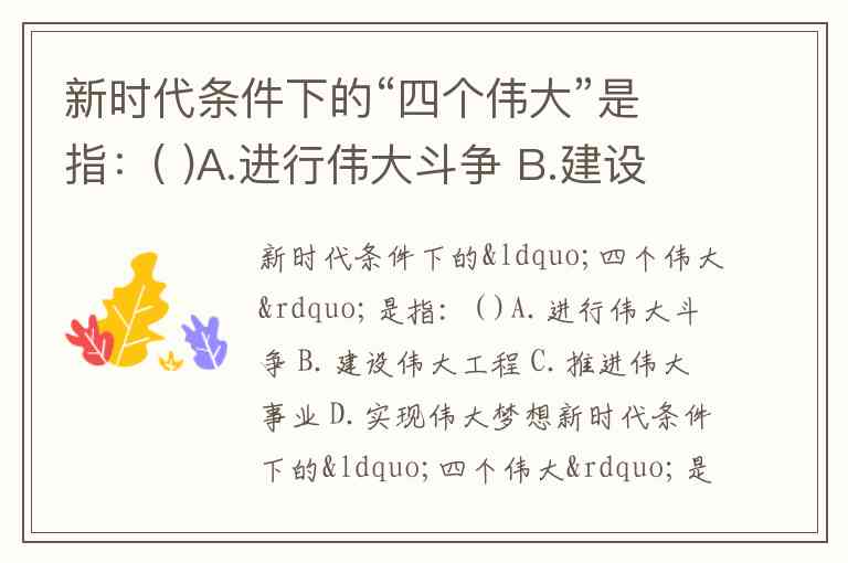 新时代条件下的“四个伟大”是指:( )A.进行伟大斗争 B.建设伟大工程 C.推进伟大事业 D.实现伟大梦想