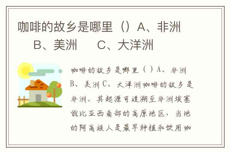 咖啡的故乡是哪里()A、非洲 B、美洲 C、大洋洲