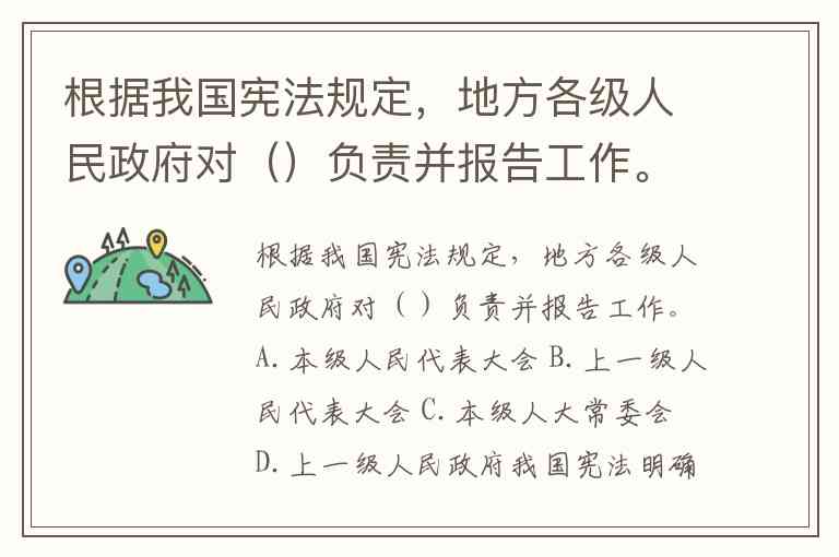 根据我国宪法规定,地方各级人民政府对()负责并报告工作。A.本级人民代表大会 B.上一级人民代表大会 C.本级人大常委会 D.上一级人民政府