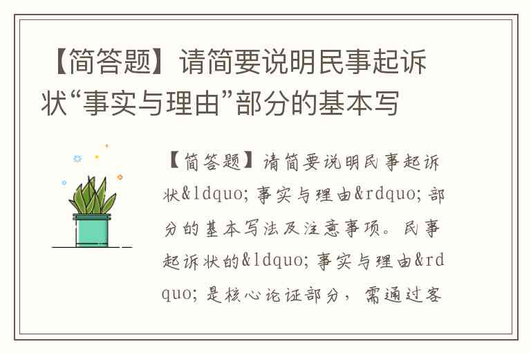 【简答题】请简要说明民事起诉状“事实与理由”部分的基本写法及注意事项。