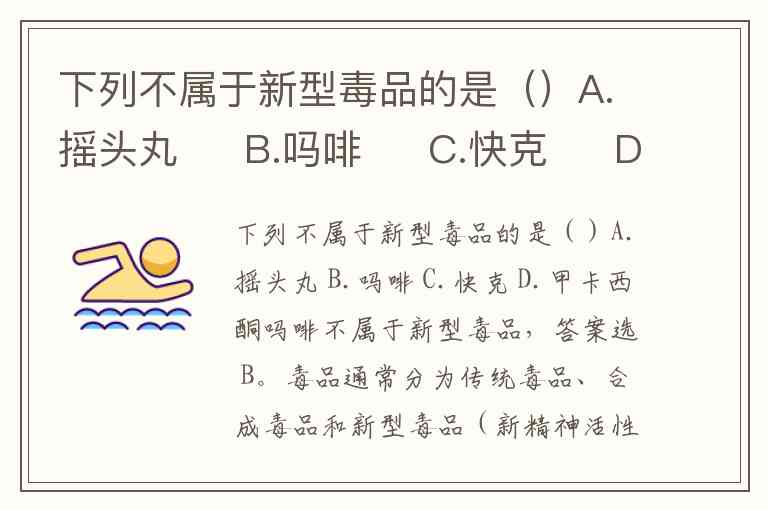 下列不属于新型毒品的是()A.摇头丸 B.吗啡 C.快克 D.甲卡西酮