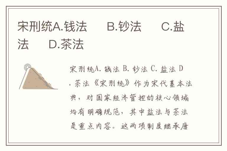 宋刑统A.钱法 B.钞法 C.盐法 D.茶法