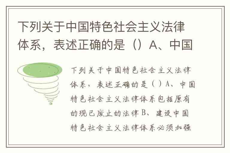 下列关于中国特色社会主义法律体系,表述正确的是()A、中国特色社会主义法律体系包括原有的现已废止的法律 B、建设中国特色社会主义法律体系必须加强立法 C、中国特色社会主义法律体系不包括行政法规 D、目前,以宪法为核心的中国特色社会主义法律体系已十分完善