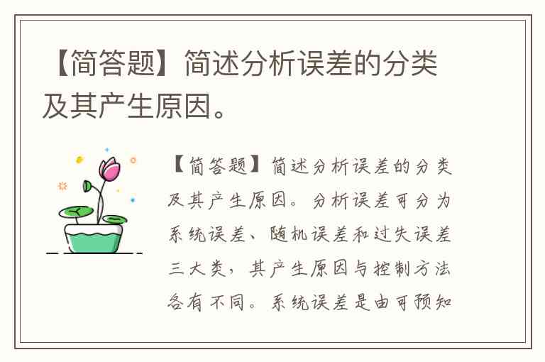 分析误差可分为系统误差、随机误差和过失误差三大类,其产生原因与控制方法各有不同。