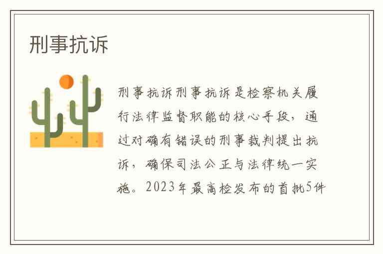 刑事抗诉是检察机关履行法律监督职能的核心手段,通过对确有错误的刑事裁判提出抗诉,确保司法公正与法律统一实施。2023年最高检发布的首批5件刑事抗诉指导性案例,涵盖普通犯罪、重大犯罪及未成年人犯罪等类型,既包括二审程序抗诉,也涉及审判监督程序抗诉,彰显了抗诉制度在纠正定罪量刑偏差、保障人权等方面的关键作用。