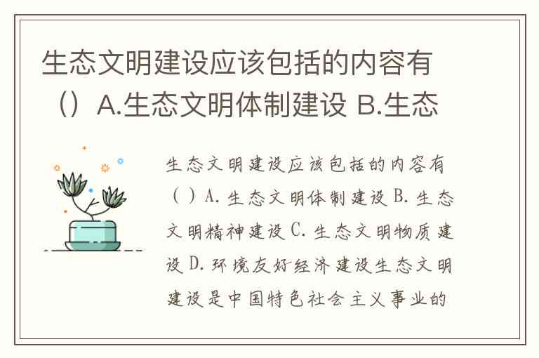 生态文明建设应该包括的内容有()A.生态文明体制建设 B.生态文明精神建设 C.生态文明物质建设 D.环境友好经济建设