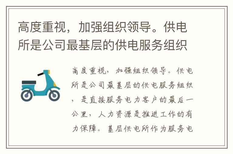 高度重视,加强组织领导。供电所是公司最基层的供电服务组织,是直接服务电力客户的最后一公里,人力资源是推进工作的有力保障。